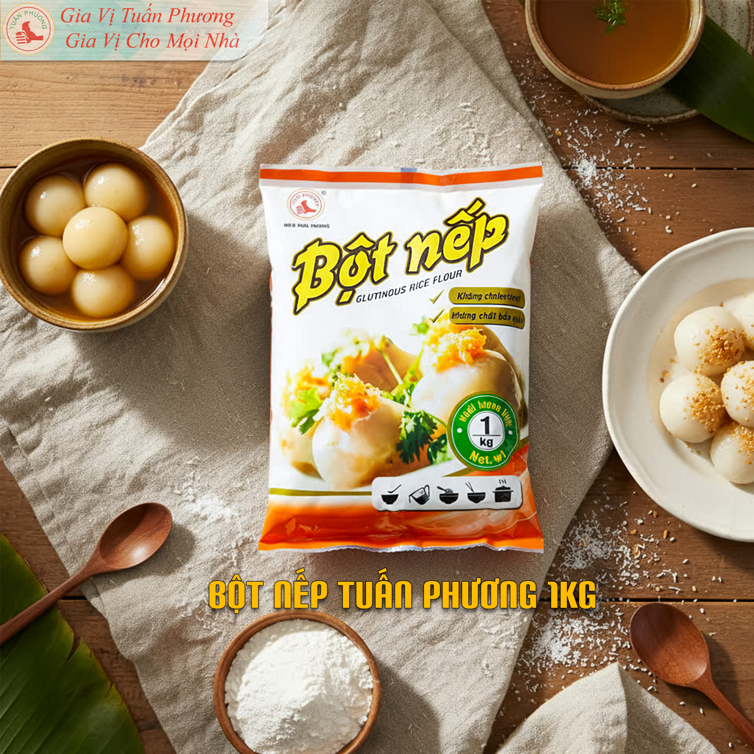 Bên cạnh quán và bếp kinh doanh, bột nếp Tuấn Phương cũng phù hợp cho gia đình sử dụng tại nhà. Gói 400g và 1kg tiện bảo quản, dễ sử dụng cho các món bánh và món ăn truyền thống..