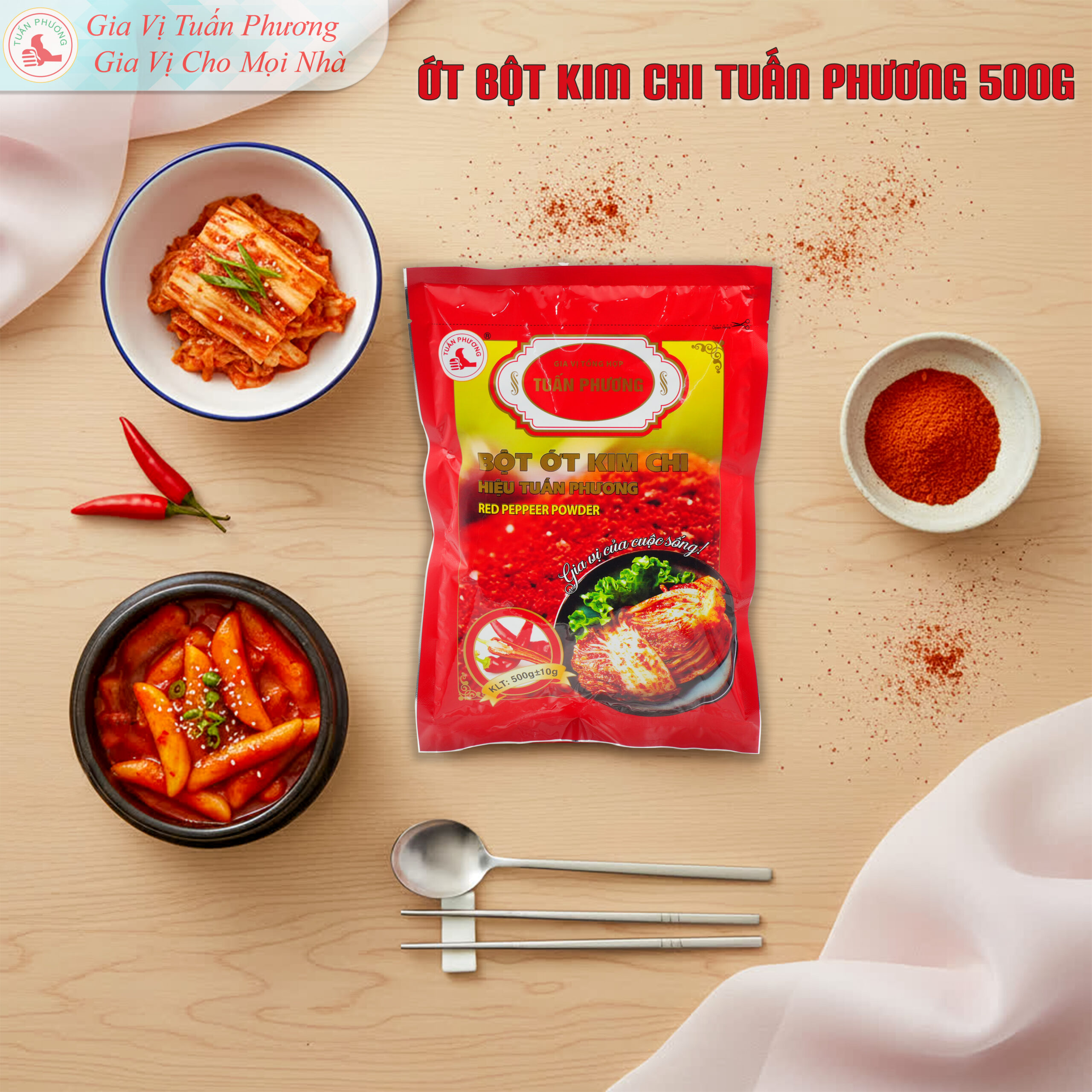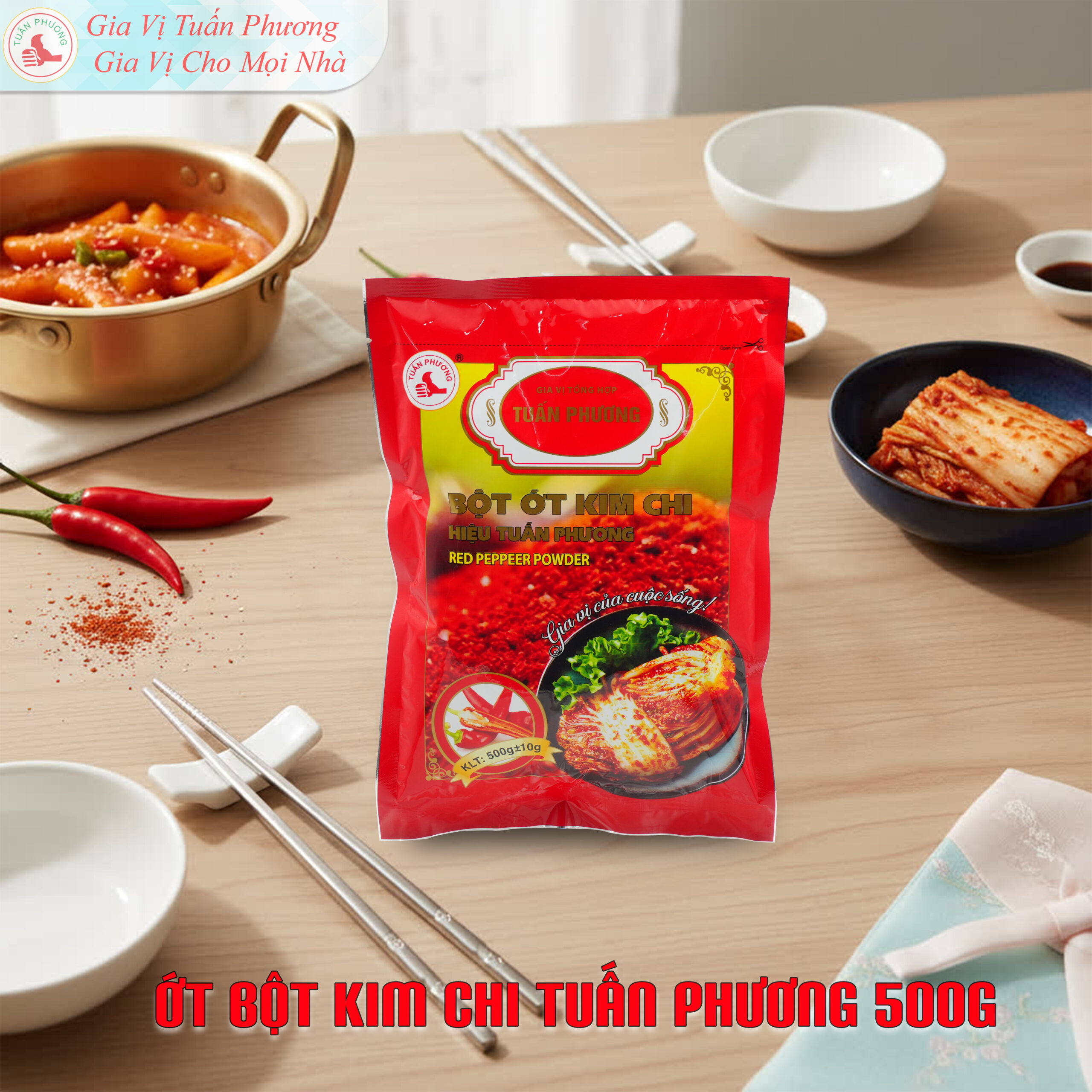 Bột ớt Kim Chi Tuấn Phương hỗ trợ bếp chuẩn hóa độ cay và màu đỏ của món ăn, giúp các món Hàn lên màu nhất quán và hạn chế phụ thuộc vào thao tác nêm nếm thủ công.