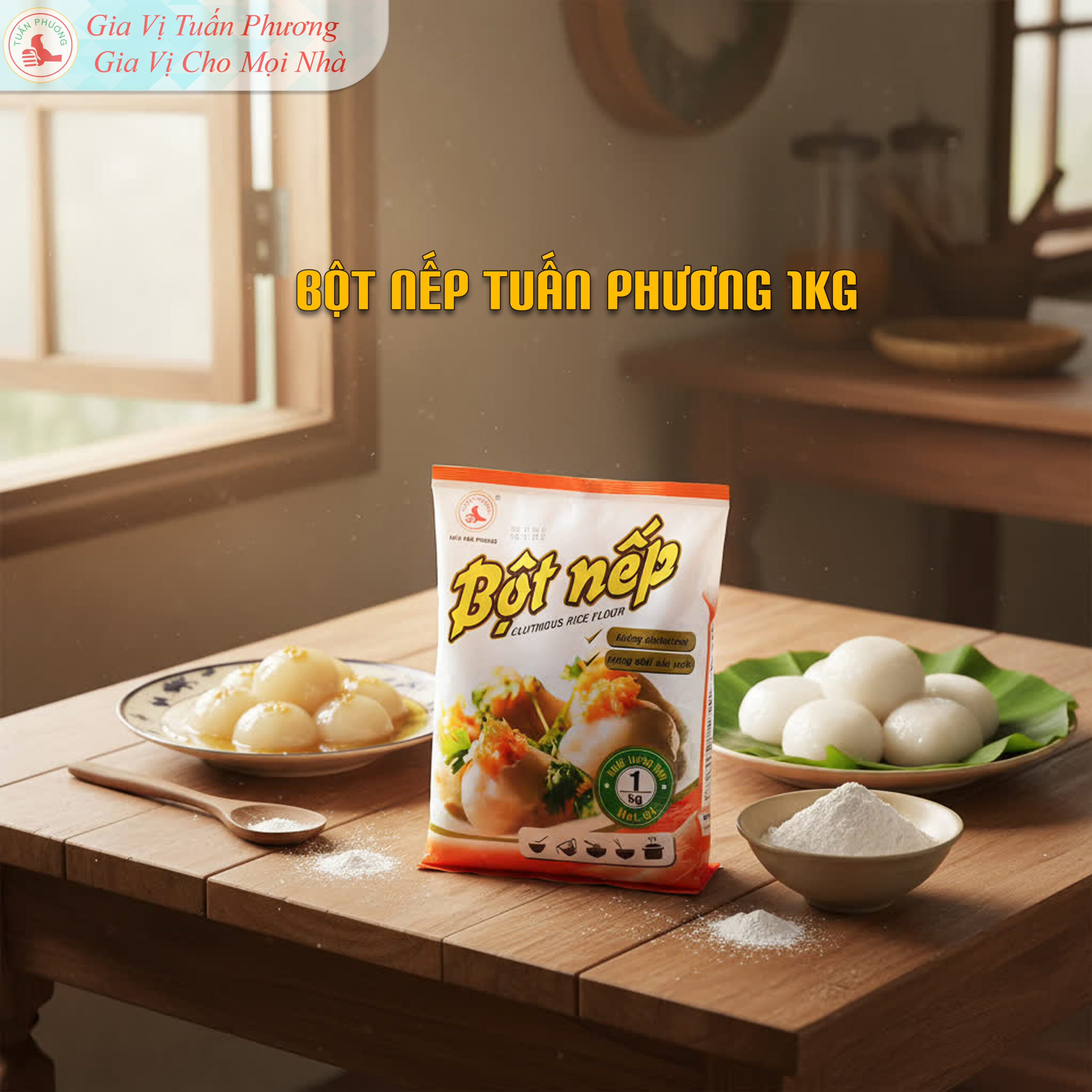 Bên cạnh quán và bếp kinh doanh, bột nếp Tuấn Phương cũng phù hợp cho gia đình sử dụng tại nhà. Gói 400g và 1kg tiện bảo quản, dễ sử dụng cho các món bánh và món ăn truyền thống..