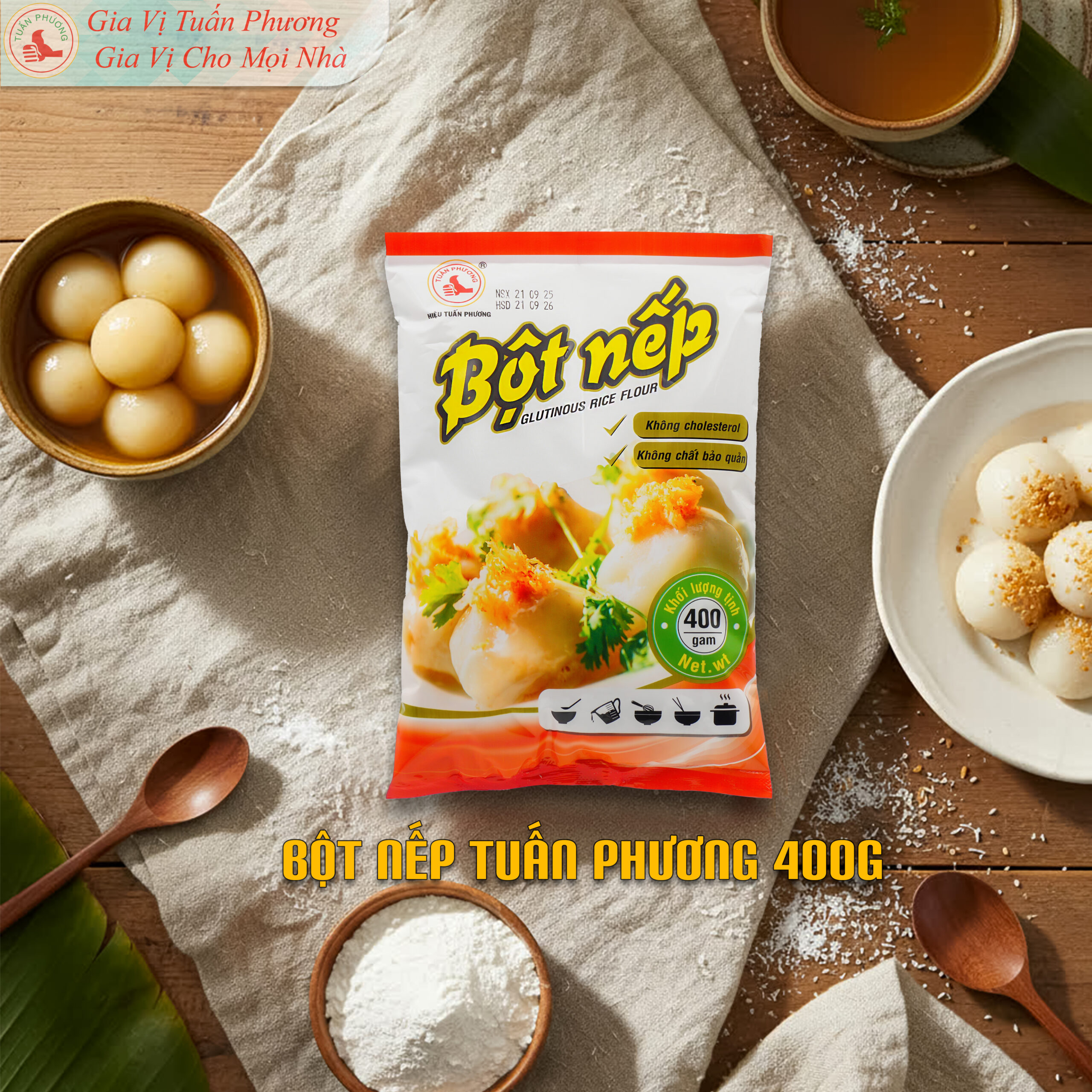 Bên cạnh quán và bếp kinh doanh, bột nếp Tuấn Phương cũng phù hợp cho gia đình sử dụng tại nhà. Gói 400g và 1kg tiện bảo quản, dễ sử dụng cho các món bánh và món ăn truyền thống..