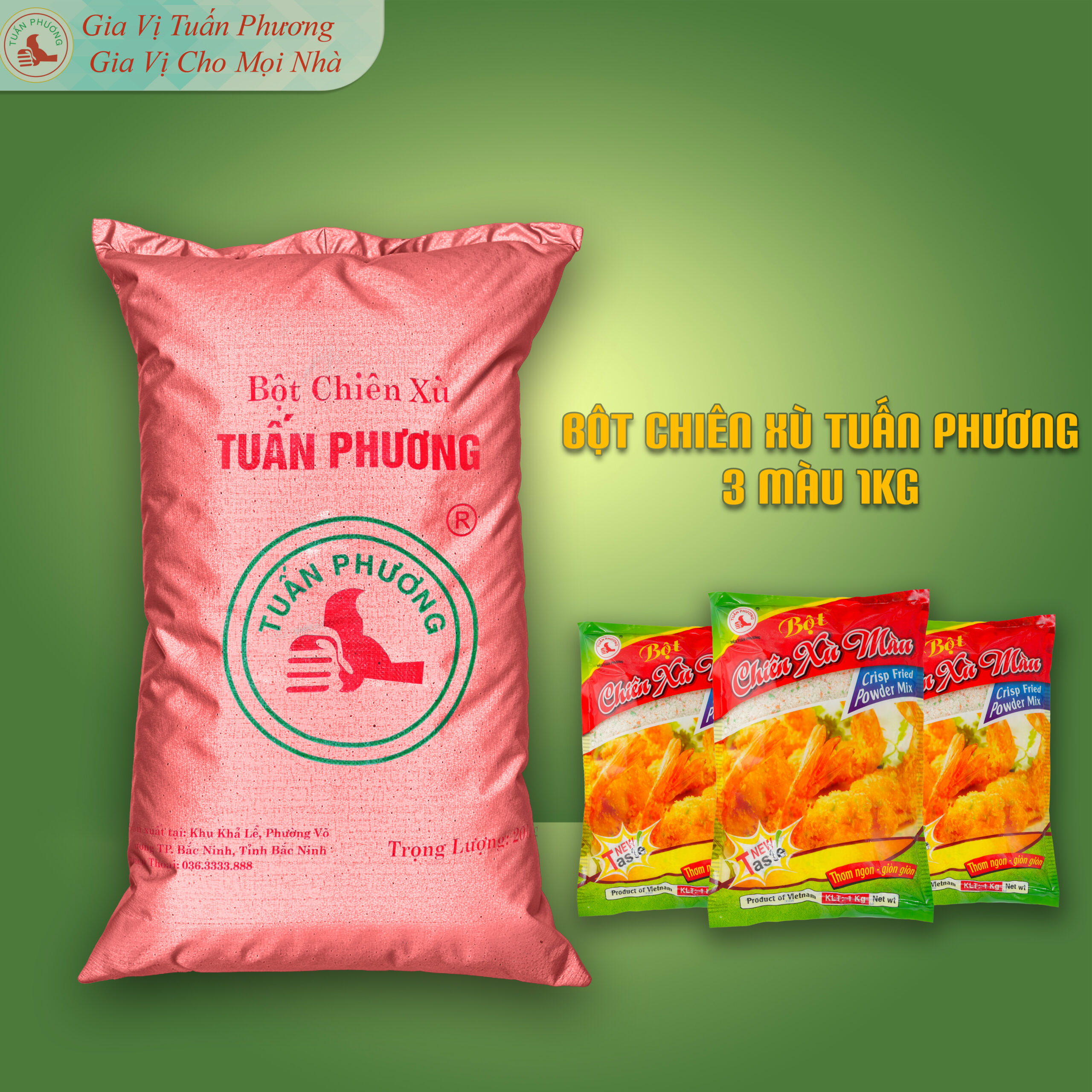 “Quý khách đang tìm nguồn Bột chiên xù 3 màu Tuấn Phương 1Kg giá sỉ tốt nhất? Hãy kết nối ngay với chúng tôi để nhận bảng giá cạnh tranh và chính sách ưu đãi cực hấp dẫn dành riêng cho đại lý!”